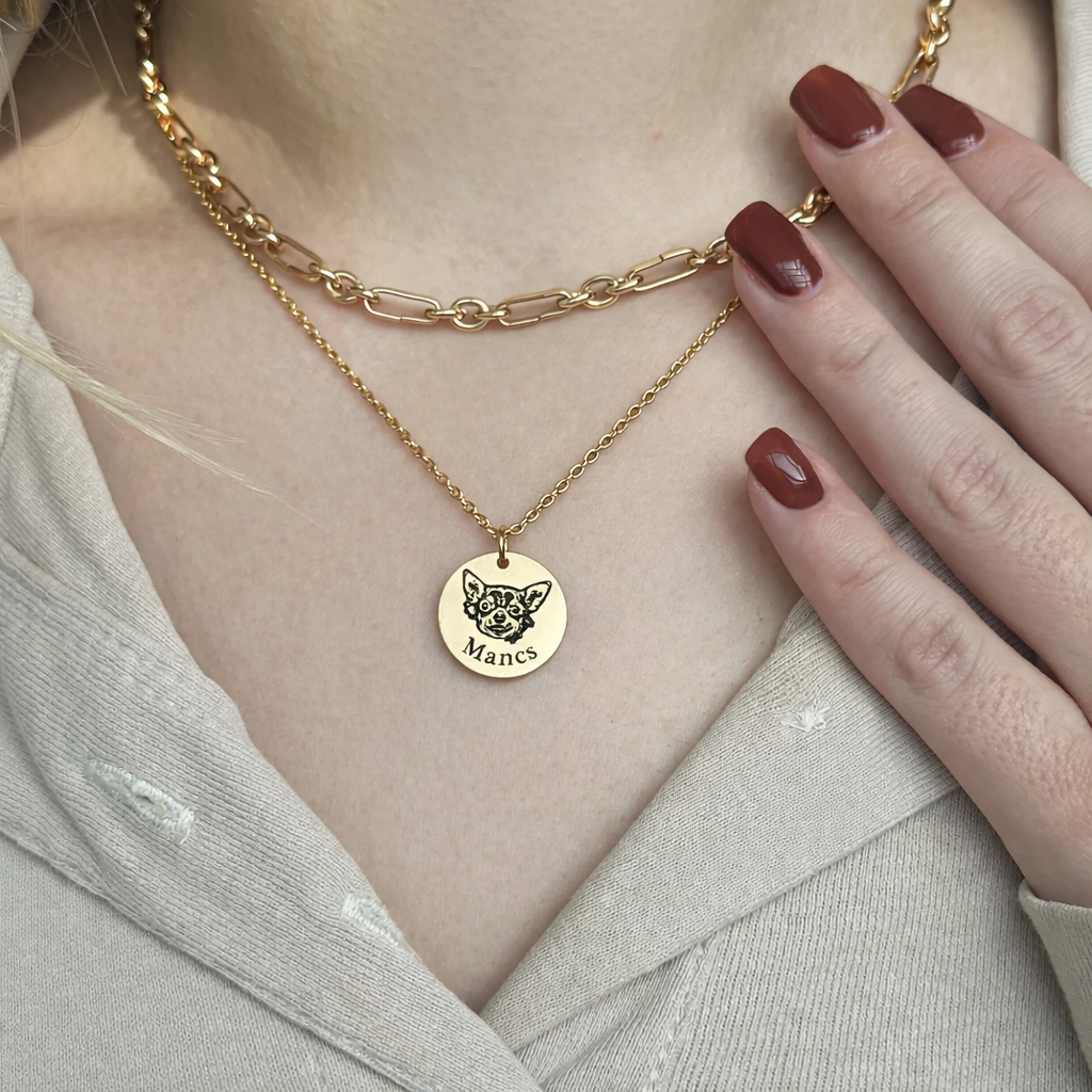 Ez a nyaklánc nem pusztán egy gravírozott medál, hanem egy személyes emlék, amely mindig veled van. A kedvenced arca aprólékos részletességgel jelenik meg az ékszeren, a neve pedig végleg összeköti veled. Letisztult, elegáns darab, amit nem elteszel, hanem nap mint nap viselsz, közel a szívedhez.